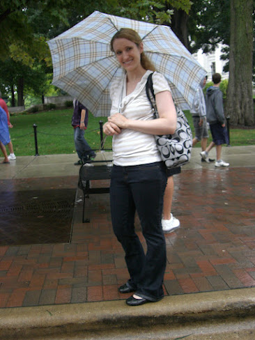 M and I were determined to get out for the Taste of Madison food festival today, even though it was pouring rain. I happily ate my chocolate chip cookie dough egg rolls, fried calamari, and dark chocolate gelato before Carina had a meltdown and we had to head home. Forgive my lack of coordination; I don't have an umbrella that went with my outfit. I'm pretty sure that plaid + stripes is some sort of major faux paus :)